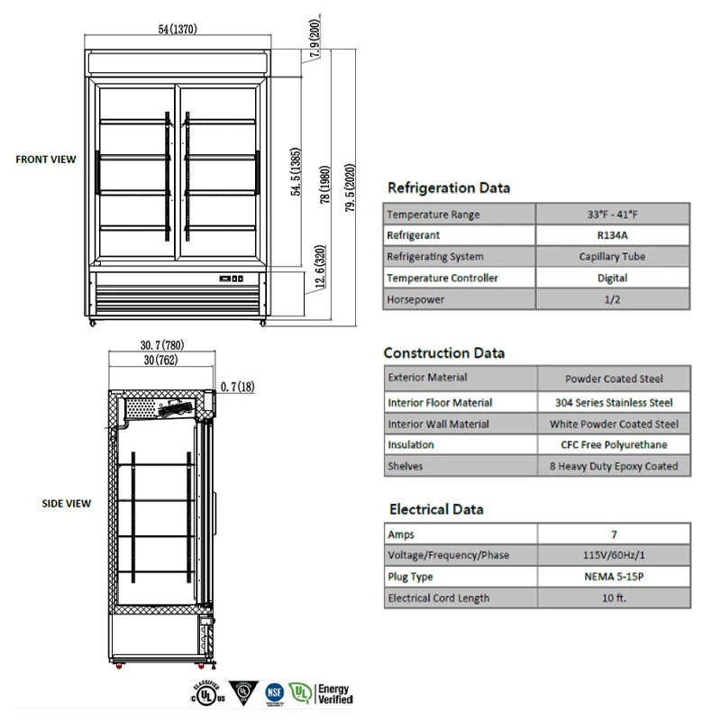 Bar Products SLIDING GLASS DOOR MERCHANDISER REFRIGERATOR – 48 CU. FT.
