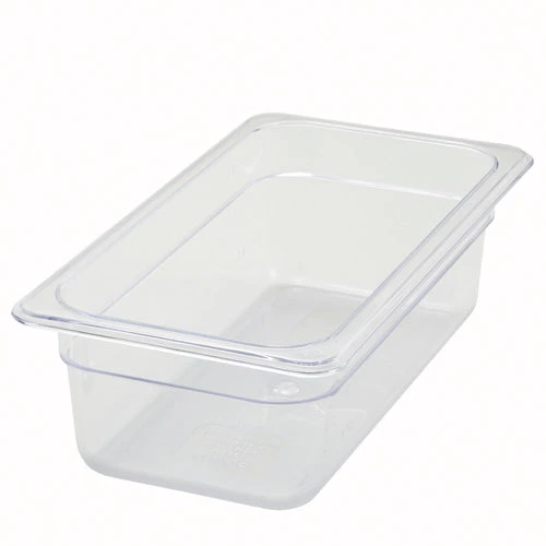 These easy to use, stackable1/3 Size Clear Polycarbonate Food Pans are handy for organizing in any kitchen commercial or residential. The clear PolyCarbonate plastic construction is highly durable and great for transporting, storing and serving raw or already prepped foods. Poly-Ware food pans are ideal while traveling to cater special events or on the go meals with friends and family. Guaranteed to arrive without mess, you can expect to serve you well organized and prepped food directly to a waiting hungry crowd of people. Durable plastic food pans are designed to withstand temperatures from -40°F to 210°F, making them NSF certified, dishwasher safe and crack-resistant for those unforeseen mishaps. Poly-Ware minimizes acidic reaction making it ideal for breads, meats, poultry, fruits and vegetables. These pans come in many various sizes making it easier to coordinate and pack more efficiently.