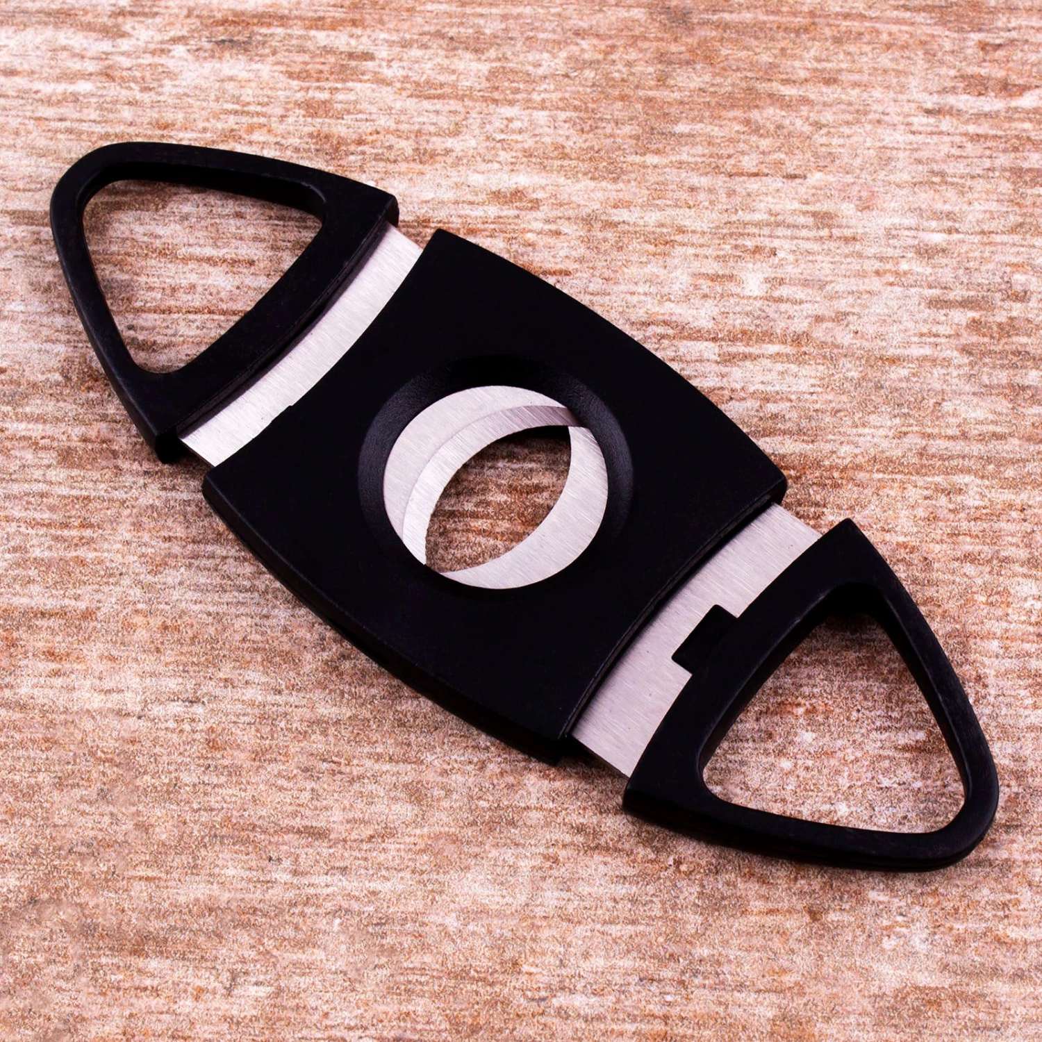 This 54 Ring Gauge 2 Stainless Blade Cigar Cutter was designed to provide a clean chop on your favorite cigars up to a thick 54 ring gauge. It is very lightweight, sturdy, and easy to use. It is made of plastic and measures 3.75″ in length.