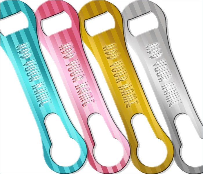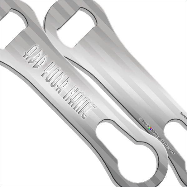 Choose from several color options of this reflective “Foil Wrap” V-Rod® Bottle Opener design, and also have the ability to add your own text right into the design. Adding your name (or other text) is optional, but a cool way to claim your opener. Simply choose your color and type in your message. This is also a great customizable gift idea for the bartenders or beer drinkers you wish to show your appreciation for.
