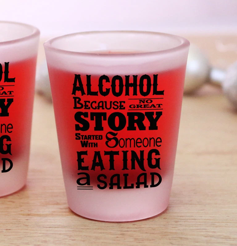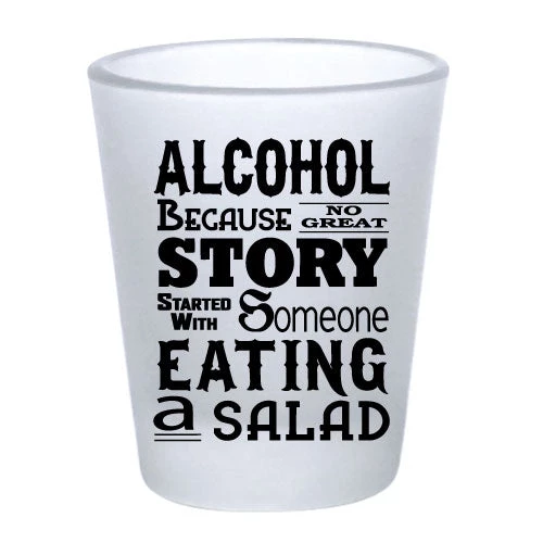 It’s true! When was the last time a great story started with someone eating a salad? This funny shot glass is the perfect way to get any party started! Stock up now so you’ll have glasses ready to get any party started.