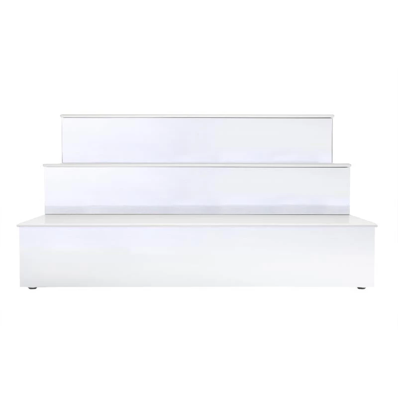 These beautiful LED shelves feature an elegant, polished metal aluminum surface covering both the fronts of the steps plus the sides of the whole unit. This unique reflective surface will provide an extraordinary display for your bottles and other items. And not only that, but they’re very durable, too!