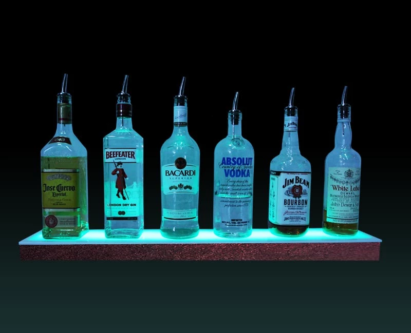 LED Liquor Bottle Display Shelves are a great way to showcase your different types of liquor brands. It grabs the attention of your guests while creating a fun ambiance decor to your bar. These low profile 1 step (tier) shelves are manufactured right here in our USA Woodshop. Each shelf showcases a high quality craftsmanship that is durable and built to last at an unbeatable price.