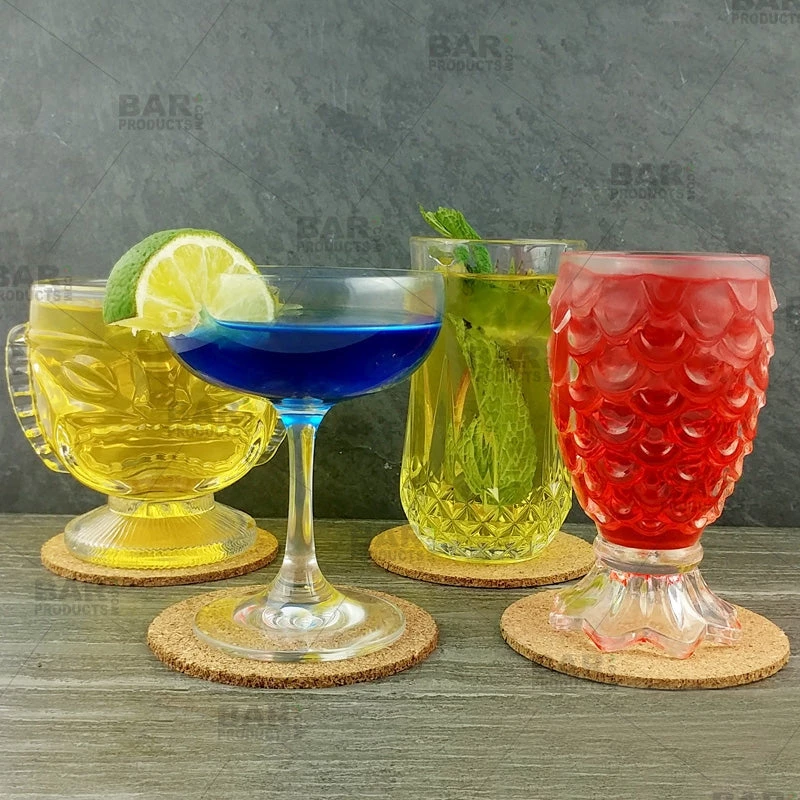 These cork coasters are lightweight showcasing a natural light brown color and are soft to the touch. Standard 4 inches in diameter these coasters accommodate many styles of glassware. They protect surfaces with the durable and absorbent cork material. Cork is a natural thermal insulator, making these suitable for commercial or residential use. Cork coasters resist mold, mildew, and are hypo-allergenic. Each pack contains 4 cork coasters that measures 4″ x 1/8″. These coasters are eco-friendly as no trees are cut down in the production of cork.
