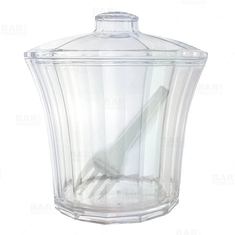This fluted acrylic ice bucket comes with removable liner and tongs. An elegant and modern looking ice bucket will surely impress your guests whether you are hosting a grand party or just a small gathering. A perfect size for any table or counter. This is an attractive acrylic ice bucket made with a solid sturdy design. The inner liner helps with keeping ice from melting and also prevents condensation on your table or counter space. This acrylic 4 qt. ice bucket measures 8″ height x 8 3/4″ rim x 6 1/2″ base. Removable liner measures 7″ height x 8 1/4″ rim x 6″ base with Tongs measuring 7 1/2″ long x 2″ mouth. Ensuring that your ice is sanitary and professional for any occasion.