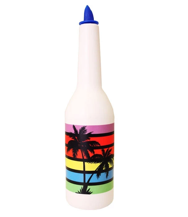 This Rainbow Palms design is imprinted on our “Original FlairCo™” Flair Bottle. The FlairCo™ Bottle has been designed to thoroughly mimic the weight and feel of an actual bottle… therefore making your practice time more accurate. The high endurance, one piece plastic injection mold allows for years of practice and growth of your flair skills. They are built to last through the wear and tear of missed catches, and are the perfect flair bottles for an aspiring flair bartender!