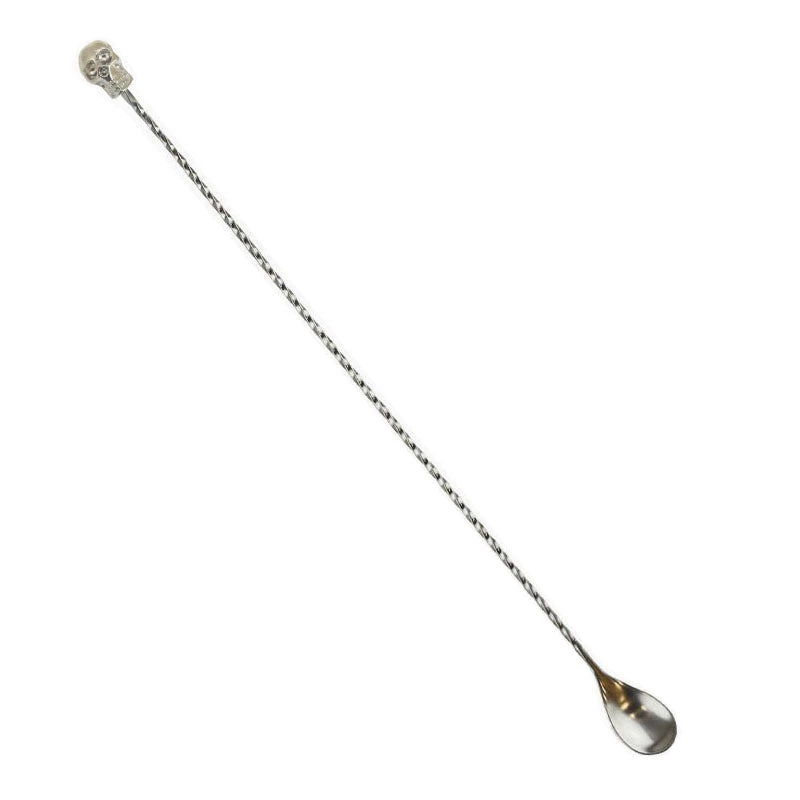 Bar spoons are a necessity behind any bar or found within any serious bartender’s bar tool line up. They serve many vital purposes. Properly stirring cocktails to capture the perfect chill while not watering down the bold flavors of your spirits is a practice dating back many bar generations. A professional bartender or master mixologist deserves to use the best tools. For those times you need to stir a cocktail instead of shaking not any spoon will do for the job. You need a professional bar spoon and this stainless steel skull bar spoon provides everything a professional will need in a good bar spoon. With this 40 cm sinister skull themed bar spoon, not only do you get to utilize a professionally designed bar spoon, but also give your bar service a fun fierce pick your poison vibe. The high quality stainless steel material along with the detailed lines of the weighted tip with skull and twisted stem takes this bar spoon from ordinary to extraordinary!