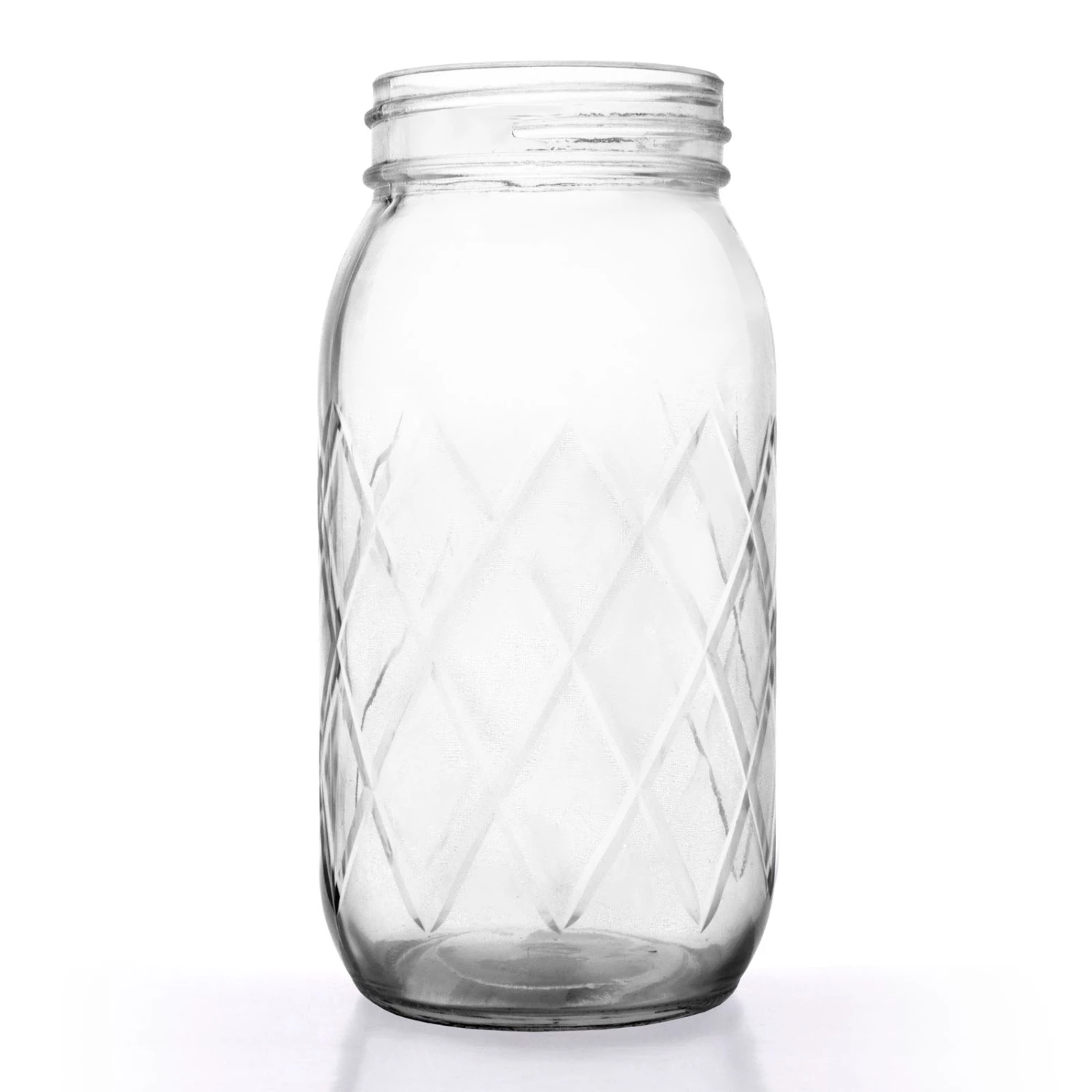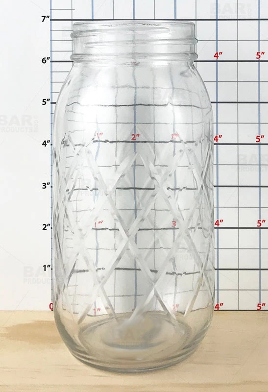 Imagine mixing and serving up your tall cocktails in this trendy diamond cut style Mason Jar. This high quality glassware piece from BarConic® holds up to 24 ounces of liquid and will surely impress your guests at your next gathering. This Mason Jar is ideal for all types of beverage service and garnishing in style. Perfect for ice tea, lemonade and even frothy smoothies and shakes. Great mason jar for mixologists and/or home bars for fermentation and ingredient storage. Lid not included.