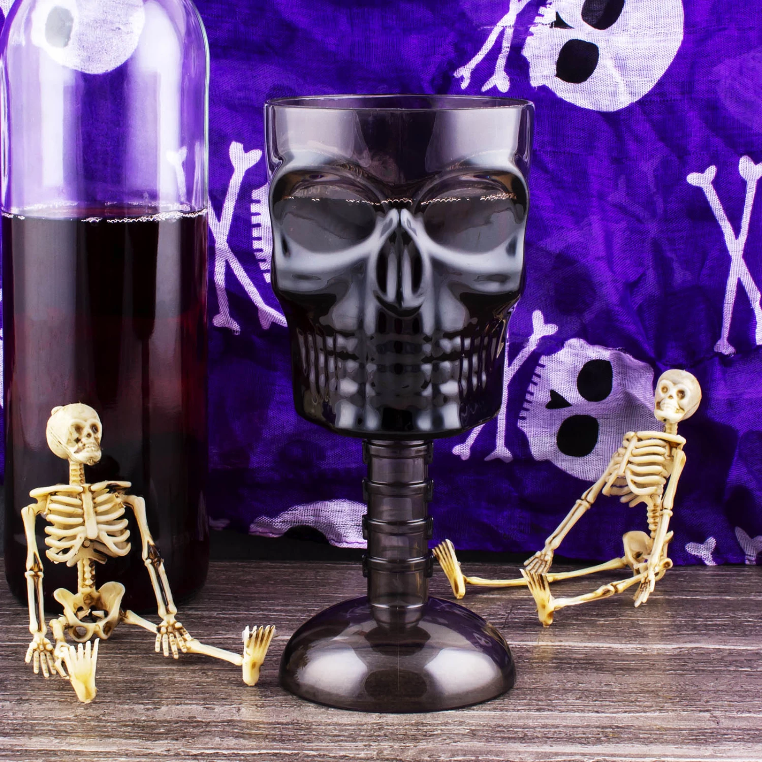 Enjoy a glass of wine during the spooky holiday with this BarConic® Stemmed Skull Cup. This cup’s embossed features are sure to impress your guest with how cool this cup looks. The stem of this cup replicates a spine that attached the main vessel to the round base keeping this cup very sturdy. It stands 7″ tall and has a base diameter of 2.75″. This cup has a liquid capacity of 12 ounces.
