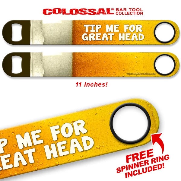 Bigger is better! Wrap your hands around this Colossal™ Speed Bottle Opener and take full charge behind the bar. Measuring 11 inches in length, this Long Mega Speed Opener handles any bottle opening job like a pro. Part of our “Colossal™” Line of bartending tools, this speed opener is a fun upgrade from the standard speed opener. Guys will want it and girls will wish they had it!