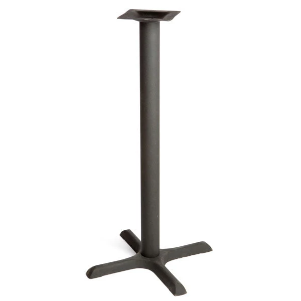 Black Powder Cross Table Bases come in standard and bar height sizes, with a 3″ Labor Savor Column and Spider. These modern bases can hold table tops from 24″- 36″ that are square, rectangular, or circle. They are constructed of heavy 18 gauge steel tubes and cast iron, and powder coated in premium black wrinkle finish. Standard height finishes at 30″ with table top attached. Bar height finishes at 42″ with table top attached.