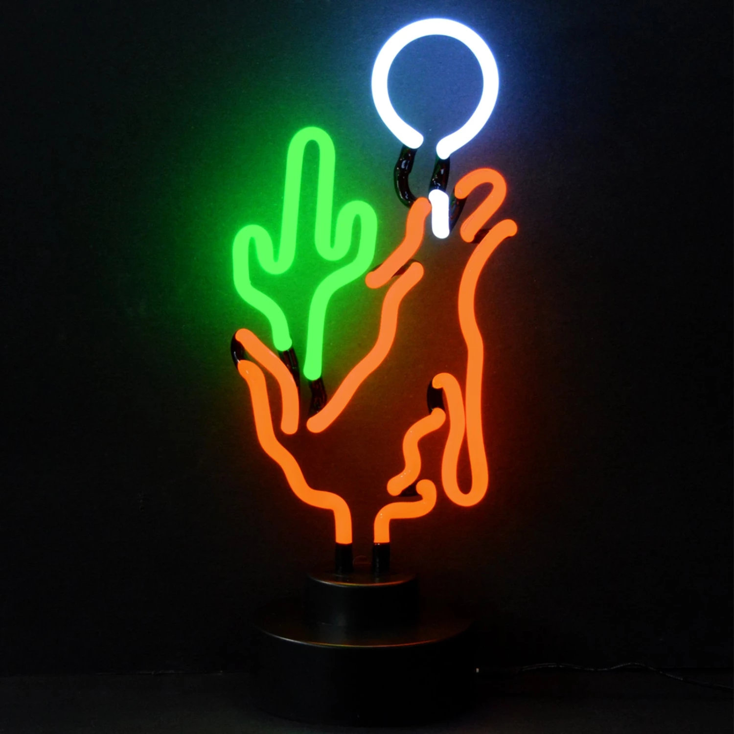 This bar sign is a fun addition to any Man Cave, home bar, or garage. The Coyote NEON Sculpture features multi-colored hand blown neon tubing. It plugs into a black base, which fully houses all the electronics. The base has an on and off switch, and can be adapted to sit on a shelf or hang on a wall. Neonetics neon sculptures have a warm mesmerizing glow, and are powered by solid state transformers, which operate silently and more efficiently than incandescent bulbs. All you do is plug it in – no special wiring required.