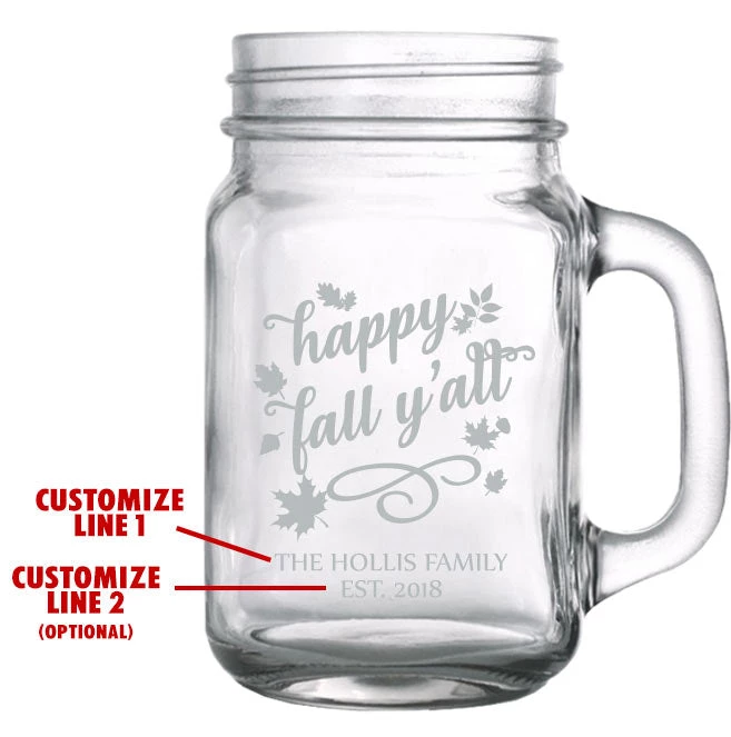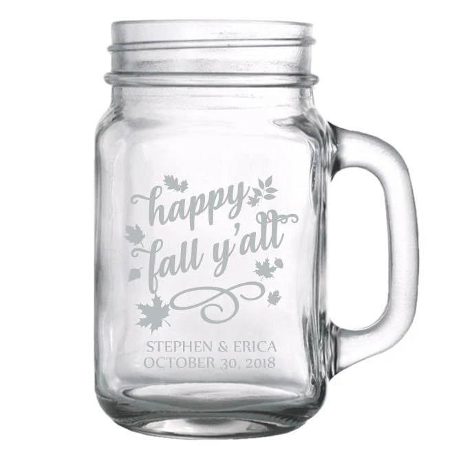 This 16 ounce Mason Jar with Handle is one of our best sellers. It showcases a high quality clarity and looks fantastic with our custom screen printing process. The ink will not wash off in the dishwasher, sending your personalized message for years to come.