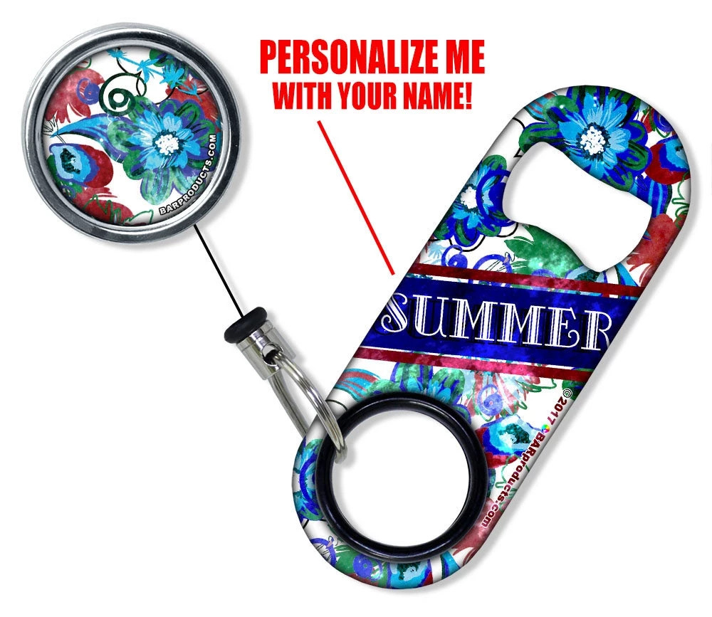 Clip your bottle opener practically anywhere for quick, convenient access… and do it with style! Showcasing a full color Grungy Floral design, we have tastefully decorated our trendy mini bottle opener to match this quality retractable reel. Clip it to your belt, pants, pocket, purse or anywhere else you can think it would come in useful.