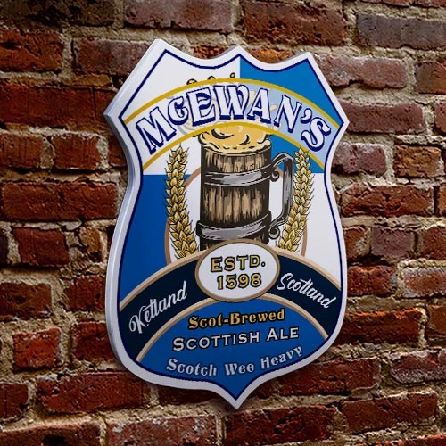 The wooden Beer Heritage Shield Tavern Sign can be customized with any name, place, or favorite ale and year established. This one of a kind sign is great for bars, man caves, family rooms, and more. Chose your favorite nationality or country and show your worldly tastes and appreciation for every beer as it was created through others interpretation of what a real ale is supposed to taste like and represent. Each sign has been created using the colors represented by each nation and is made to order by skilled craftsmen, and double checked for quality before it leaves our warehouse. It is especially perfect to add color and culture to any beer lovers, brewers or pubs walls and the best part is…adding your personalized information is no additional cost to you. Let your home bar be the envy of all that visit your place for a nice cold brewski!
