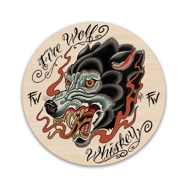 The Fire Wolf Whiskey Round Table Top features the beautiful art of Pooch, one of many Featured Artists here on BarProducts.com. Click here to see more Featured Artists.