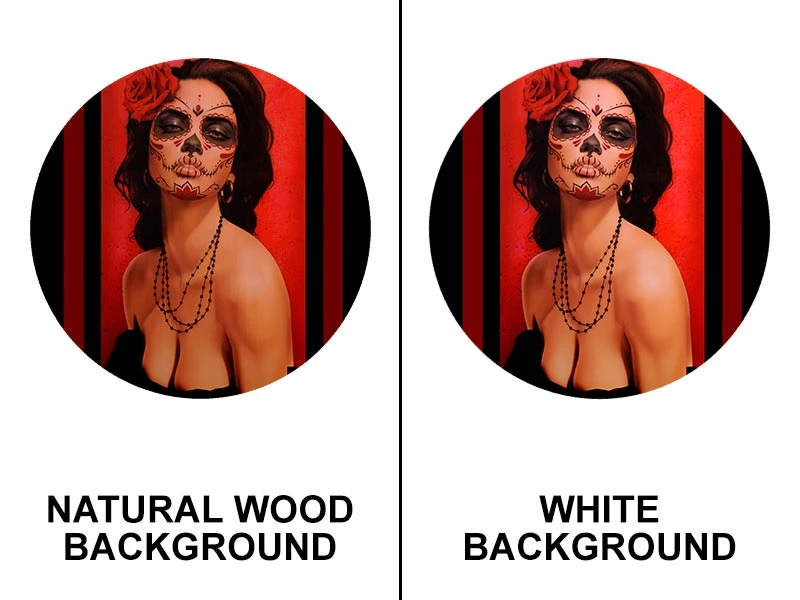 Available in either a Natural Wood background or a White background. The texture of the wood shines in the Natural Wood option, while the whites from the art are more vivid with the White option.