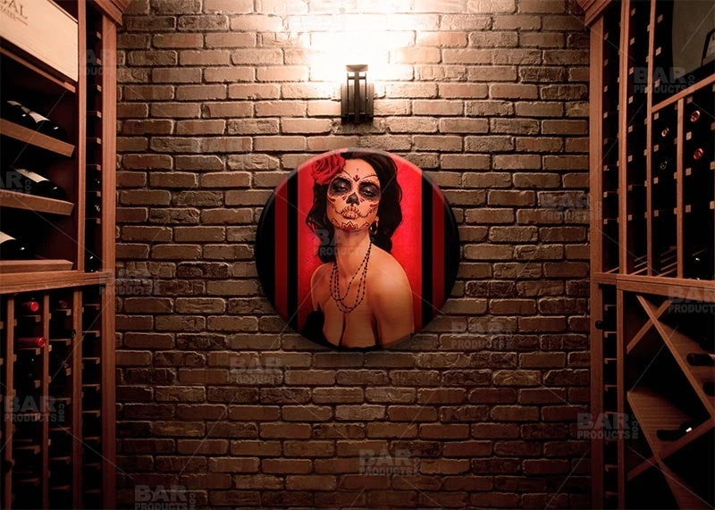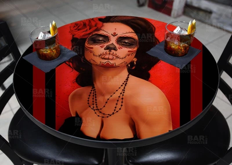 The Isabella Muerta Round Table Top features the beautiful art of Daniel Esparza, one of many Featured Artists here on BarProducts.com. Click here to see more Featured Artists.