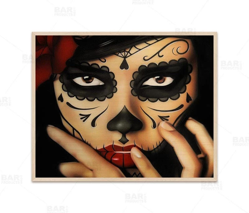 The Priscila 24″ x 30″ Table Top features the beautiful art of Daniel Esparza, one of many Featured Artists here on BarProducts.com. Click here to see more Featured Artists.