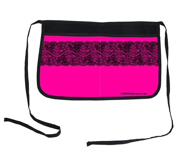 This sexy little apron is perfect for wearing on those long shifts or at home in the kitchen. This apron is available in 3 colors: Hot pink, red, and blue. Keep all your gear and money within easy reach in this 2 pocket apron. (Lace is a printed image)
