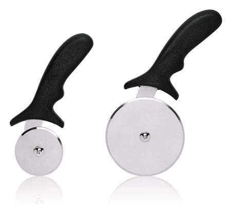 Our Pizza Cutters are designed with a sanitary stainless steel cutting wheel and features an ABS easy-grip plastic. Bakelite handle allowing for ease and comfort during use. Available in different wheel diameters, and they are great for comfort and balance!