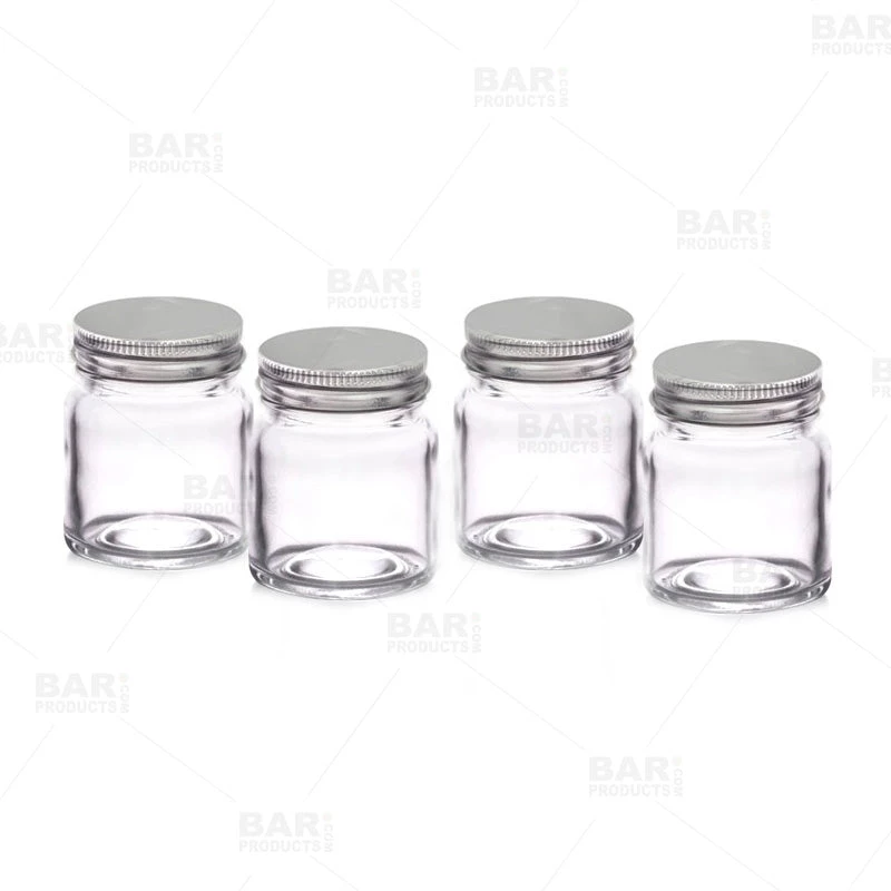 Mini mason jars with metal lids are great for home or professional use. These trendy 2.5 ounce mason jar glasses are great for serving shots and shooters or storing jams, jellies as well as other craft cocktail ingredients. These tiny little jars are a great twist on a rustic classic. When it comes to all of the creative and interesting things you can do with these, the possibilities are endless. Mini mason jars have been a consistent trend over the years and continue to grow in popularity. These mini mason jars measure 2 1/4″ x 1 1/2″, comes in a pack of 4.