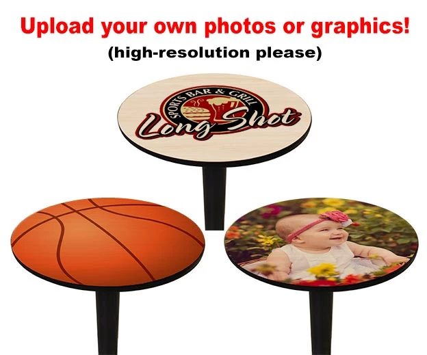 CUSTOMIZE! You can upload your own artwork to be printed on the table tops with our unique Kolorcoat™ process. You can also choose from 4 gorgeous designed created by some of our Featured Artists. Restaurant and bar patrons will be impressed by the full color art print.