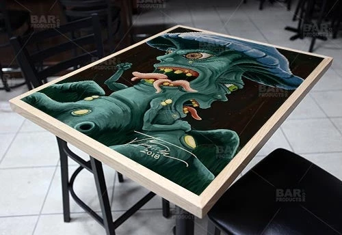 This delightful piece will look amazing used as a table top in your tiki bar or restaurant or even at home in your man cave or outdoor bar. Restaurant and bar patrons will be impressed by the full color art print. The colors are so vibrant and gorgeous that you can even hang it on your wall for display!