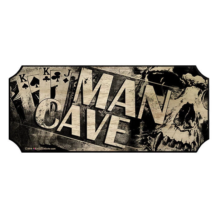 For the boys with toys! This “Man Cave” themed Bar Sign has everything a guy would want to decorate his personal lair. Skulls, Poker, Grunge… and Wood! Give fair warning to anyone who may enter… this is man territory.